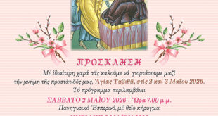 Διαβάστε ΠερισσότεραΠρόσκληση εορτής μνήμης Αγίας Ταβιθά 2024